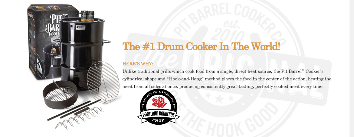 Customers come into Portland Barbecue Shop all the time looking for barrel smokers. Why? Because it’s one of the best and easiest methods of cooking & smoking and Portland Barbecue Shop is proud to bring you the best barrel cooker on the market. The Pit Barrel Cooker. The PBC has proven to be a phenomenon in the residential outdoor cooking world. Come see what makes The Pit Barrel Cooker the best magic drum on the market at the best price.