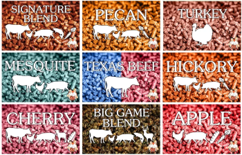 Apple, Cherry, Hickory, Mesquite, Pecan, Signature Blend, RealTree Big Game Blend, Turkey Blend w/ Brine Kit