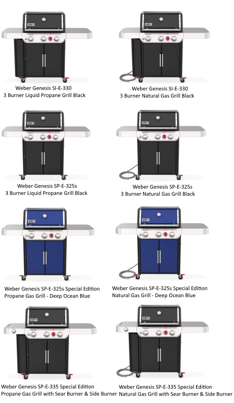Weber Genesis Special Edition SI-E-330, SP-E-325s, SP-S-325 & SP-E-335 Gas Grills.